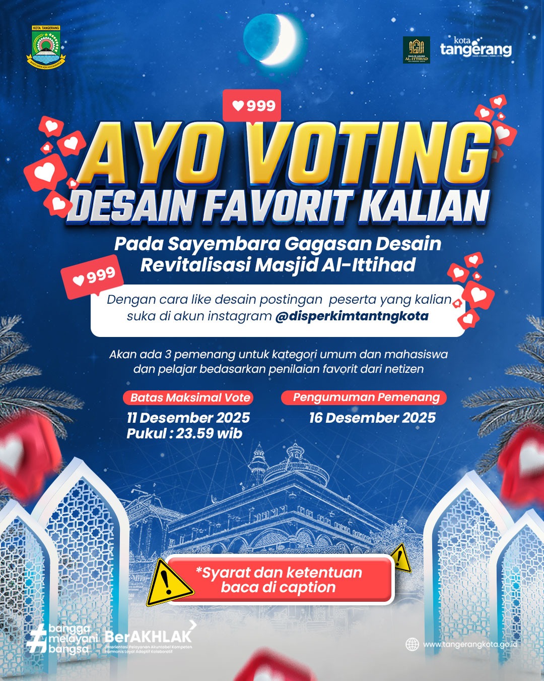 Pemerintah Kota Tangerang melalui Dinas Perumahan Permukiman dan Pertanahan menghadirkan karya desain terbaik Sayembara Gagasan Desain Revitalisasi Masjid Al-Ittihad.